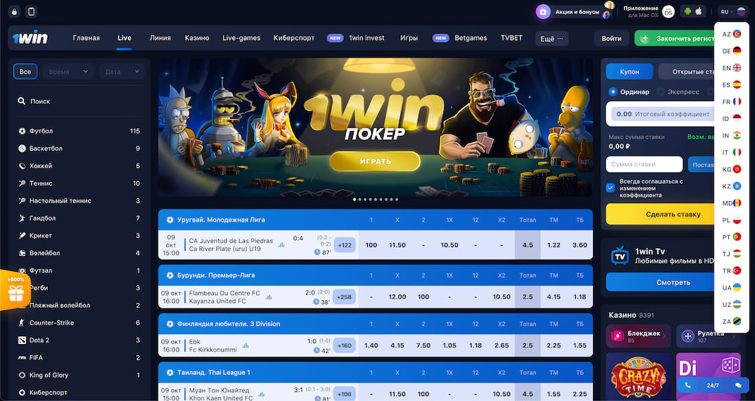 1 win предлагает современный и интуитивно понятный интерфейс, который позволяет пользователям быстро находить нужные разделы и наслаждаться игрой без лишних сложностей. На главной странице представлены основные категории: